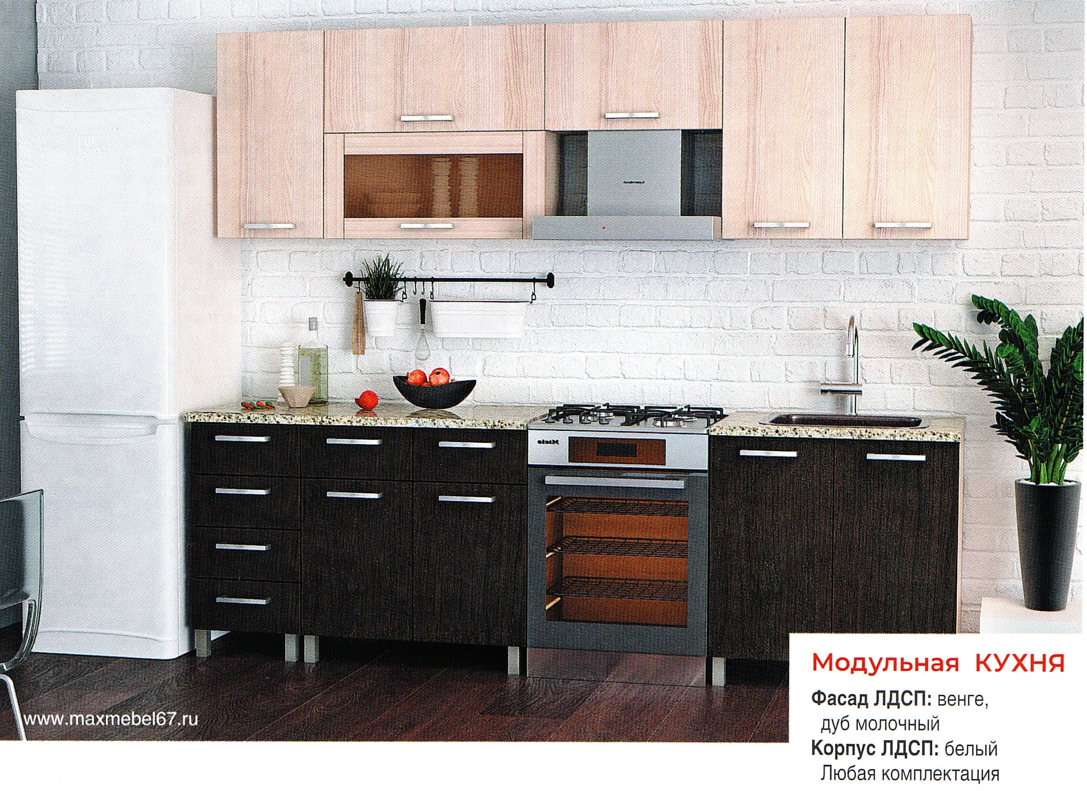Модульная кухня. Фасад ЛДСП венге+ дуб молочный. Корпус ДЛСП белый. Любая комплектация.
