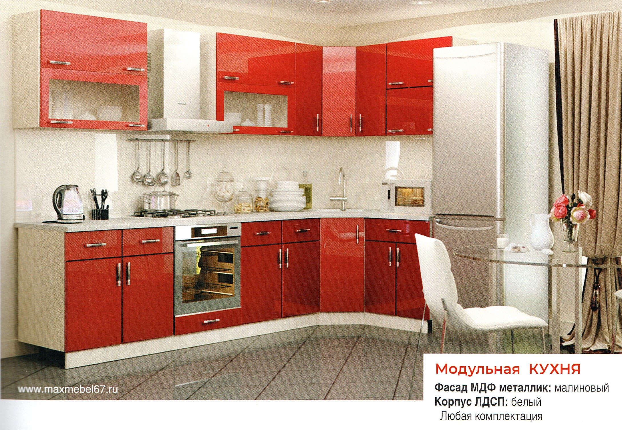 Модульная кухня. Фасад МДФ металлик малиновый Корпус ЛДСП белый. Любая комплектация.